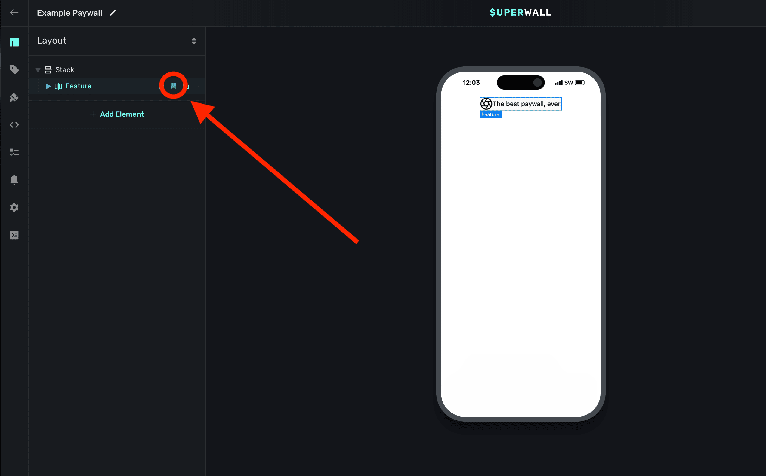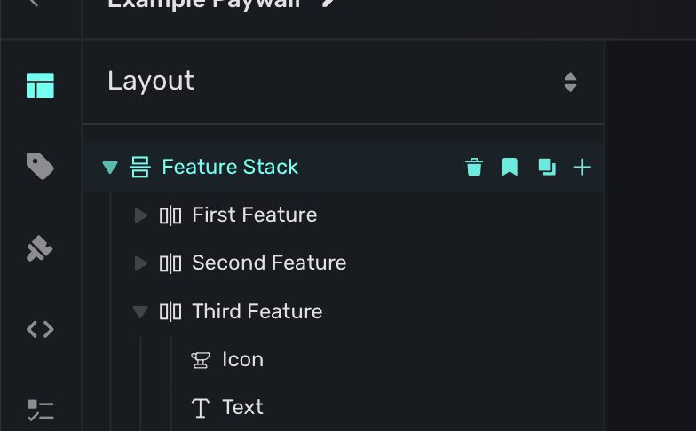 The Layout tab in the sidebar provides a visual outline of your paywall's components. Hovering over elements will highlight them in the device preview: