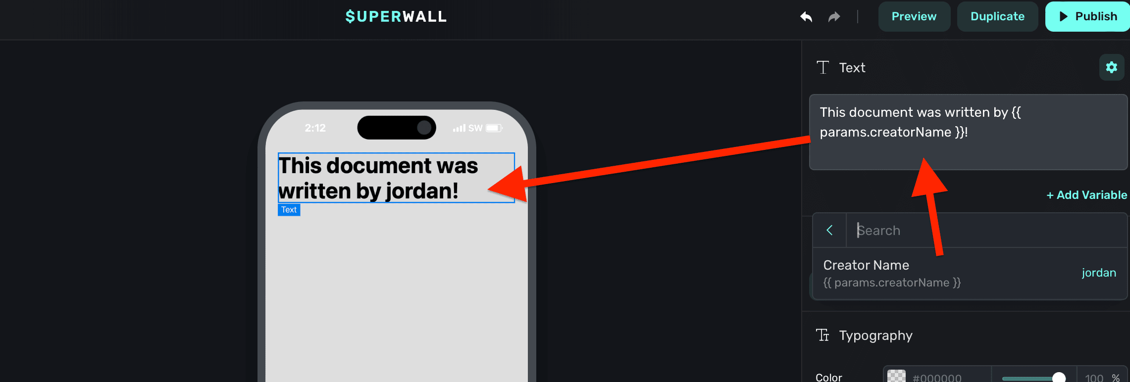 Liquid is a templating language that you can use to easily build text in your paywall. The simplest way to get started is simply by referencing a variable with curly brackets. {{ user.firstName }} will output the user's first name. (Assuming you've called setUserAttributes with firstName previously in the SDK).