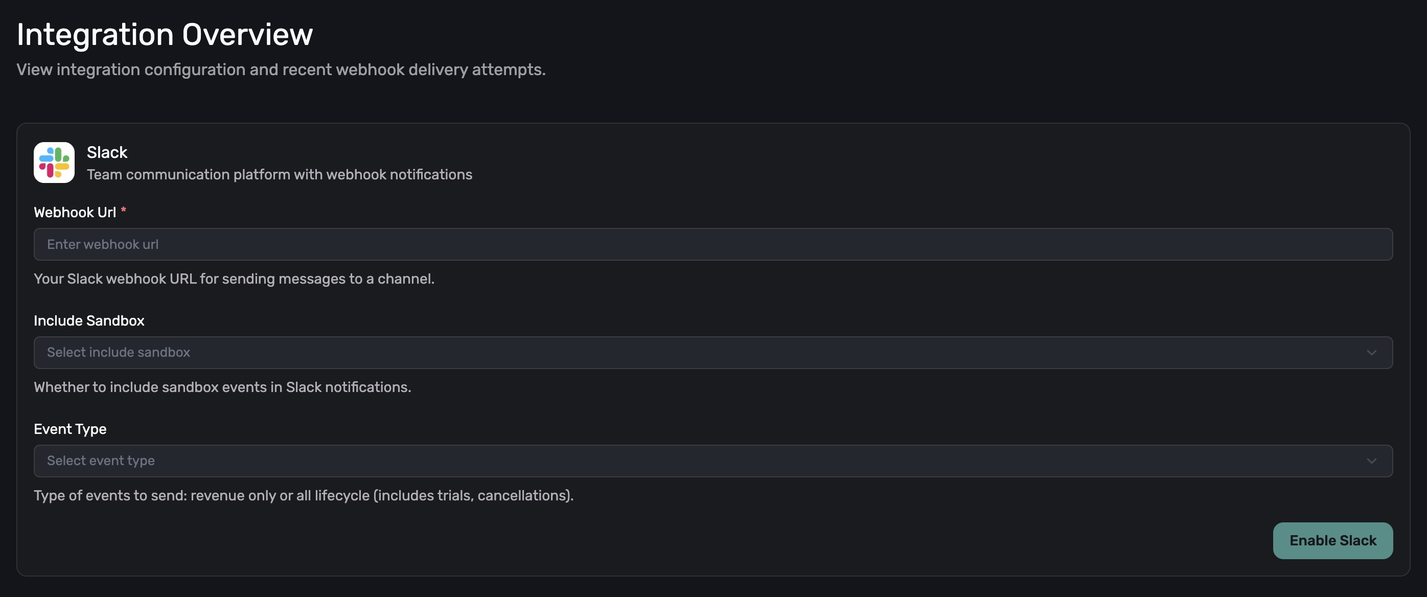 - Include Sandbox: Whether to include sandbox events in Slack notifications.
