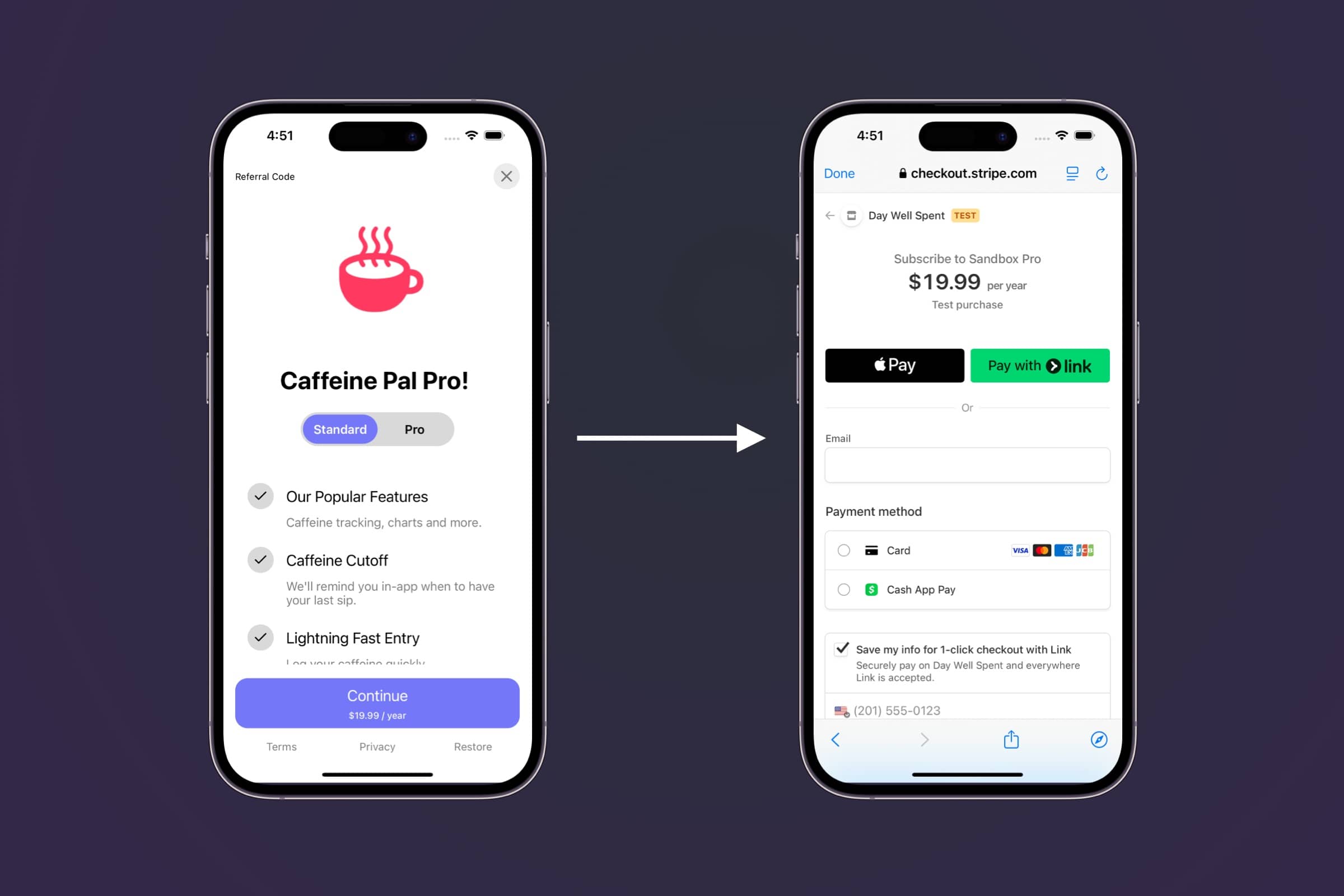 Offer Stripe products directly from your iOS paywalls and perform checkout flows.